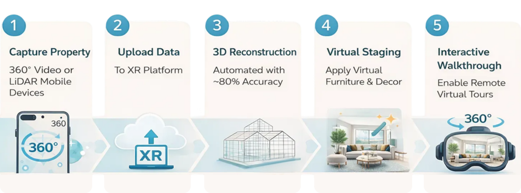 XR enables mass-market adoption by allowing properties to be converted into immersive digital experiences using mobile capture.